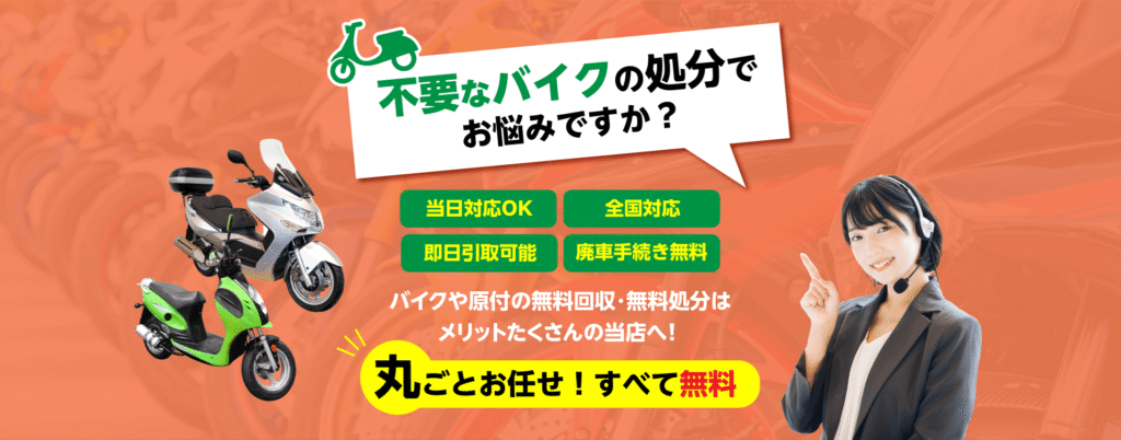 👉バイク廃車110番メインページへ 冒頭 バイク廃車手続き代行とは、ナンバープレート返納や廃車申告などの手続きを専門業者が代わりに行うサービスです。原付・軽二輪・小型二輪を問わず、無料回収と同時に廃車手続きを完了できるケ […]