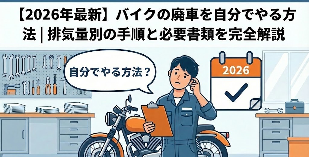 ただし、書類の準備、平日の役所・運輸支局への訪問、バイクの運搬が必要になるため、時間と手間がかかります。この記事では、排気量別の廃車手続きの具体的な手順と必要書類を詳しく解説します。