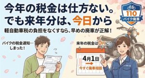 👉バイク廃車110番メインページへ 冒頭 バイク廃車手続き代行とは、ナンバープレート返納や廃車申告などの手続きを専門業者が代わりに行うサービスです。原付・軽二輪・小…