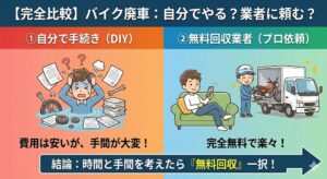 【2026年最新】バイク廃車手続きの完全ガイド。自分でやる方法 vs 無料回収業者の違いをプロが比較解説新着!!