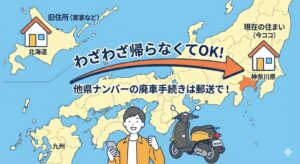 👉バイク廃車110番メインページへ 「大学進学の時に、実家の〇〇県から持ってきた原付。もう乗らないから処分したいけど…」 「ナンバープレートが 昔の住所(遠方)のままだ! わざわざ廃車手続きのために帰省しないとダメ?」 […]